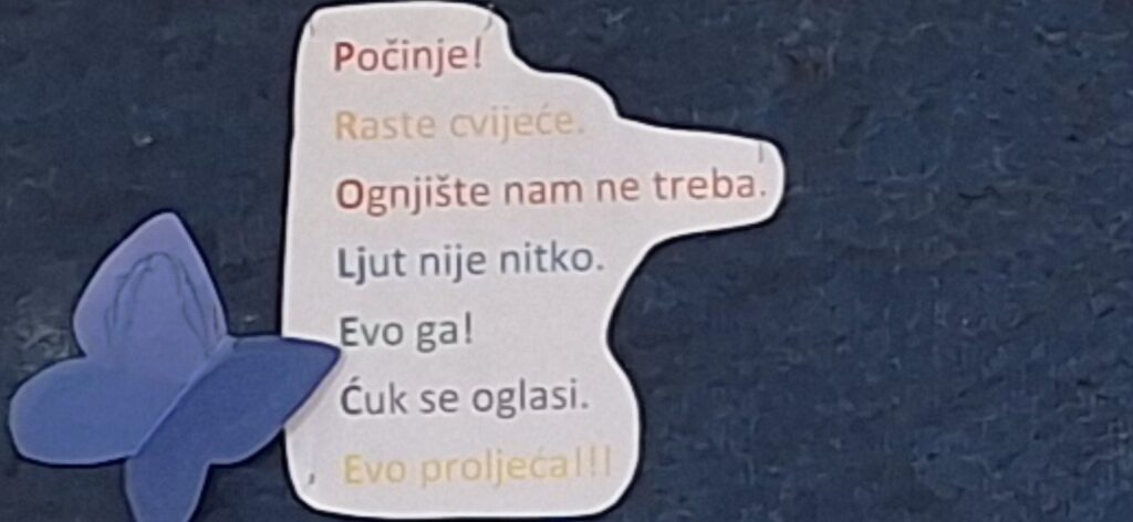 U rascvjetanu krošnju uletjele su proljetne riječi, a raznobojni leptiri oživjeli su prostor. Kreativnost, smijeh i mašta ispunili su učionicu toplinom i bojama novog godišnjeg doba.