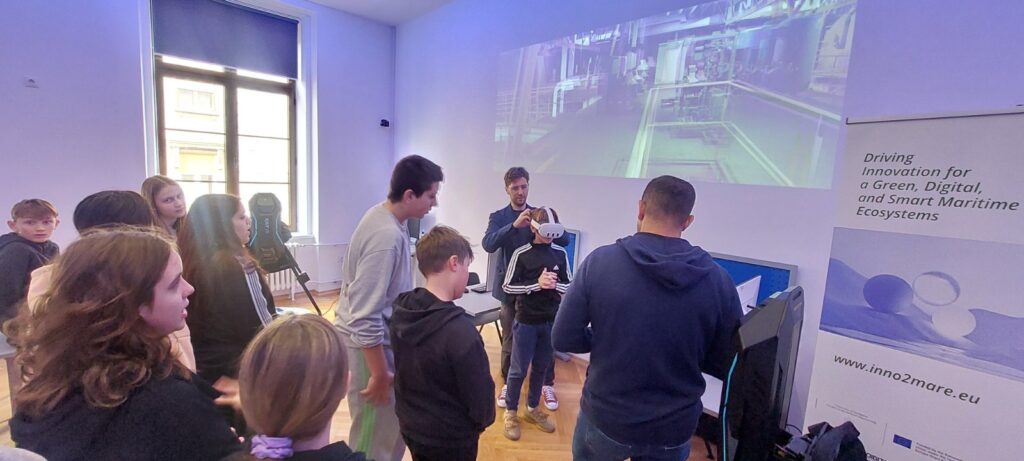 U VR laboratoriju prof. Luka Liker predstavio je gašenje požara u unutrašnjosti broda – učenici su bili oduševljeni, a vježba zahtjevna i izazovna! U MARPRO laboratoriju prof. Josip Dujmović približio nam je svijet propulzijskih strojeva i inovacija koje pokreću brodove diljem svijeta.