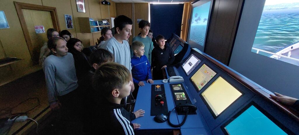 Za kraj nas je dočekala avantura na Nautičkom simulatoru! Uz pokoji nesiguran okret timuna i puno smijeha, uplovljavanje iza riječkog lukobrana pratili su budni pogledi prof. Marka Strabića.