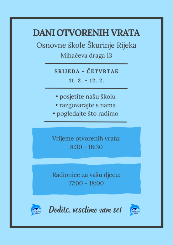 Razgledajte školu, pitajte sve što vas zanima i povedite dijete na kratke radionice.