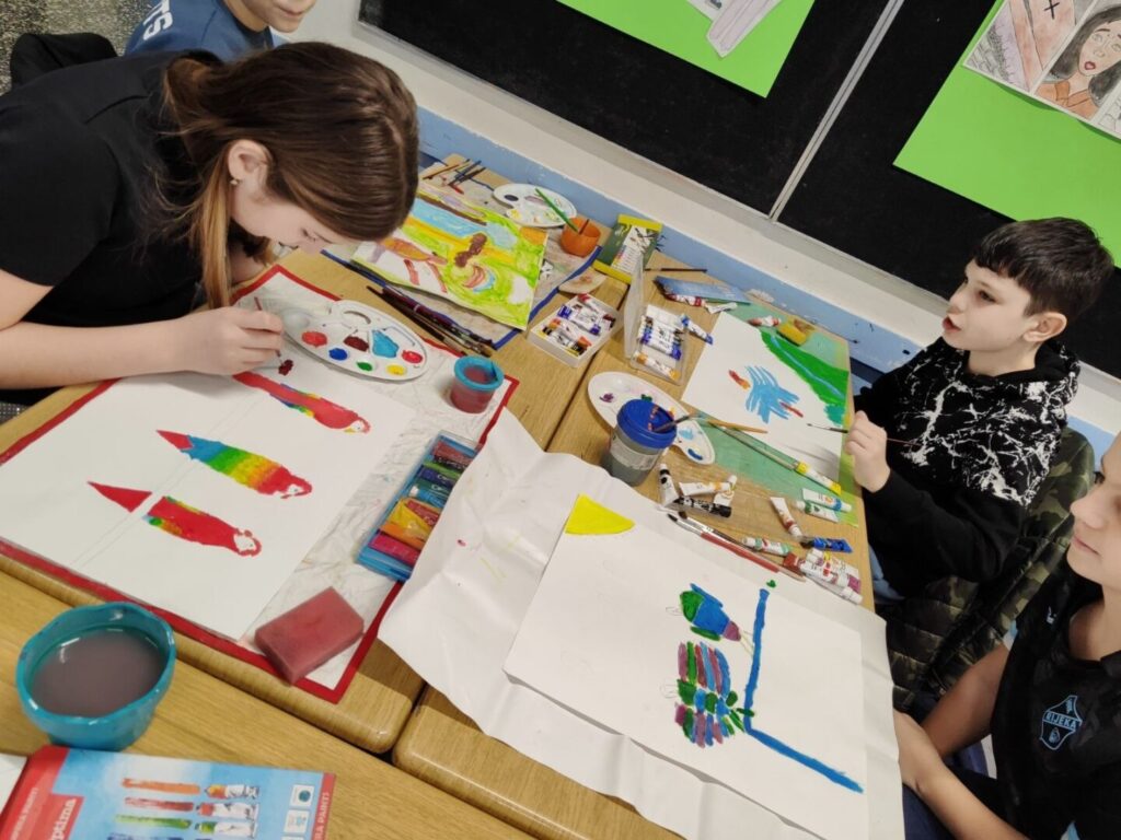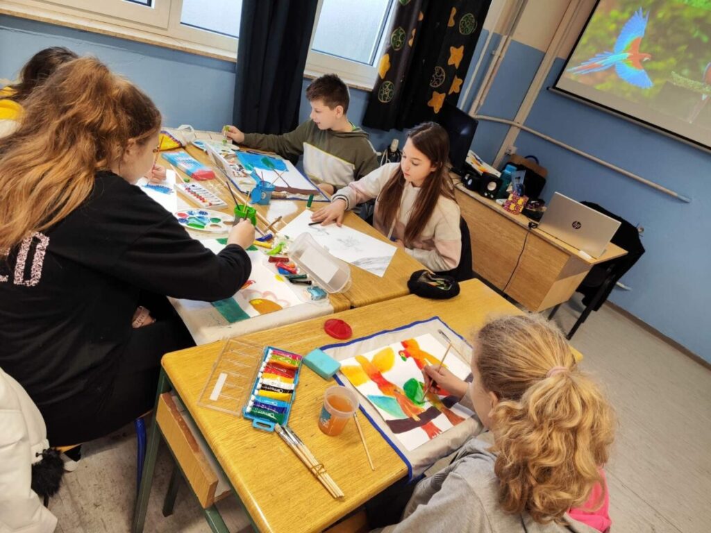 Učenici su na Likovnoj kulturi sa svojom učiteljicom barbarom Brnelić istraživali ljepotu boja kroz motiv ptice. Poigrali su se toplo-hladnim kontrastom, promišljajući odnos toplih i hladnih tonova te njihov sklad.