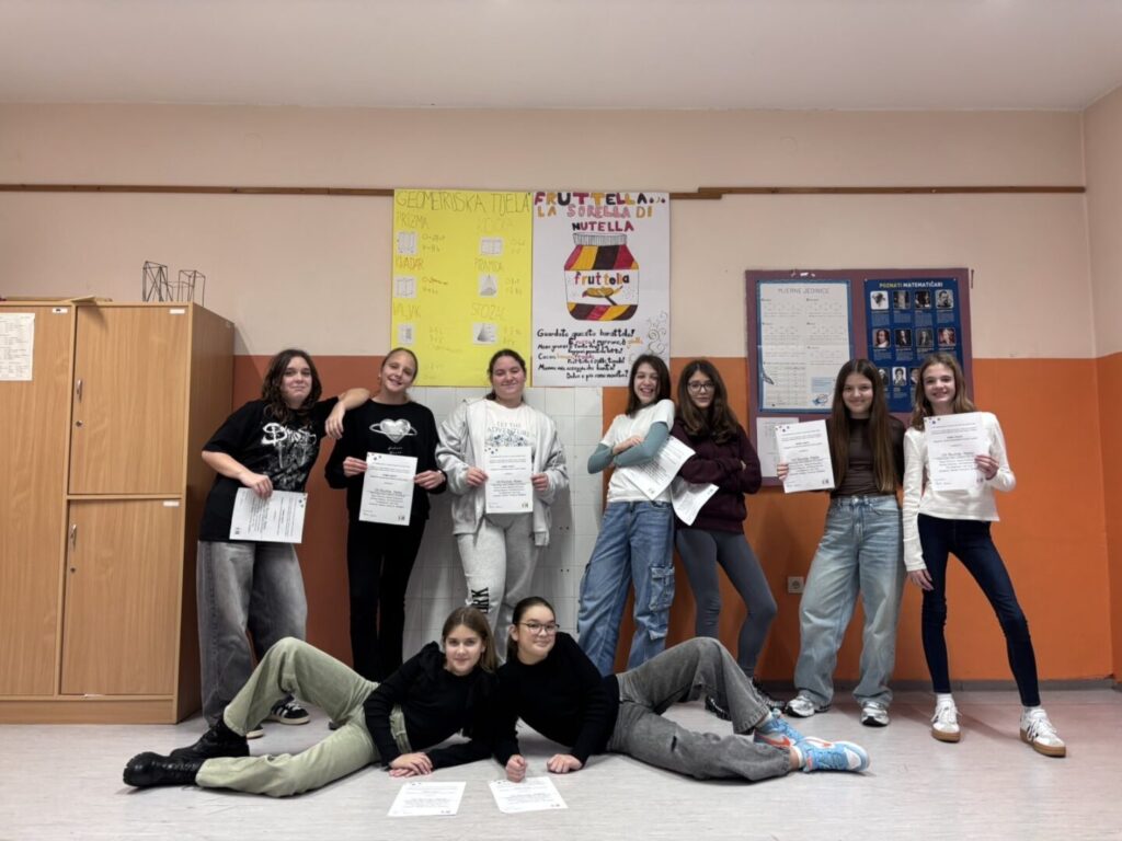 Učenice 6a i 6b razreda (Petra Gulja, Nika Juriševič, Kim Novak, Elena Pavlović, Marija Prokhorenko, Andrea Radman, Vita Radmanovac, Tea Štajduhar i Vita Torić) su osmislile i nacrtale plakat Fruttella – la sorella di Nutella.